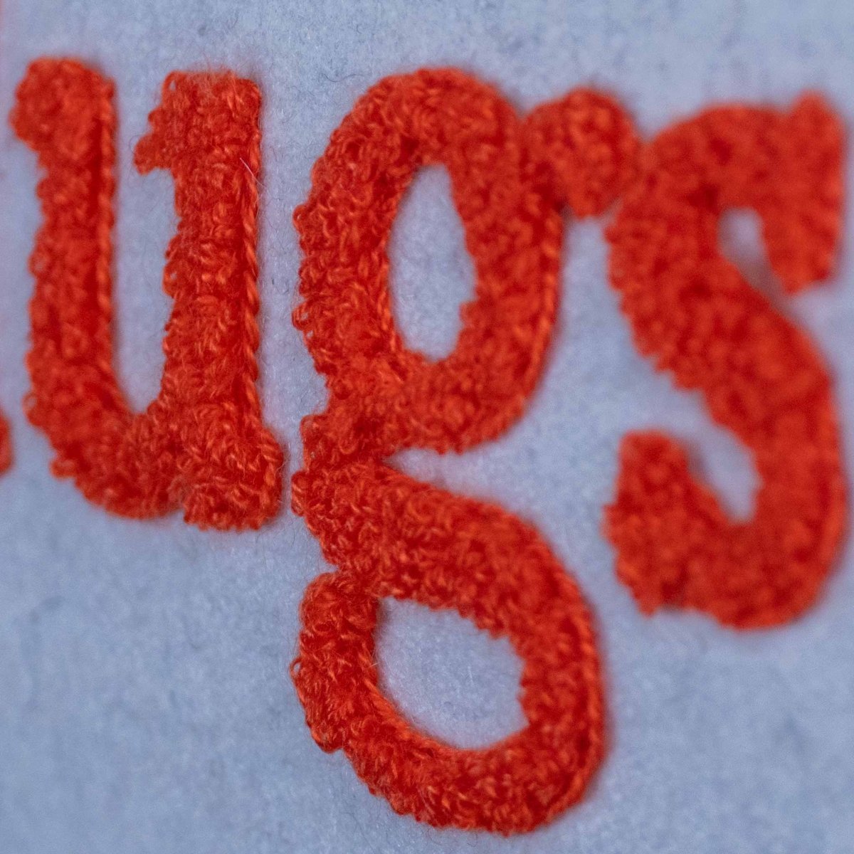 Detailverliebte Applikation: Die Frottee-Applikation fügt eine zusätzliche Texturschicht hinzu und macht das Kissen noch einzigartiger.