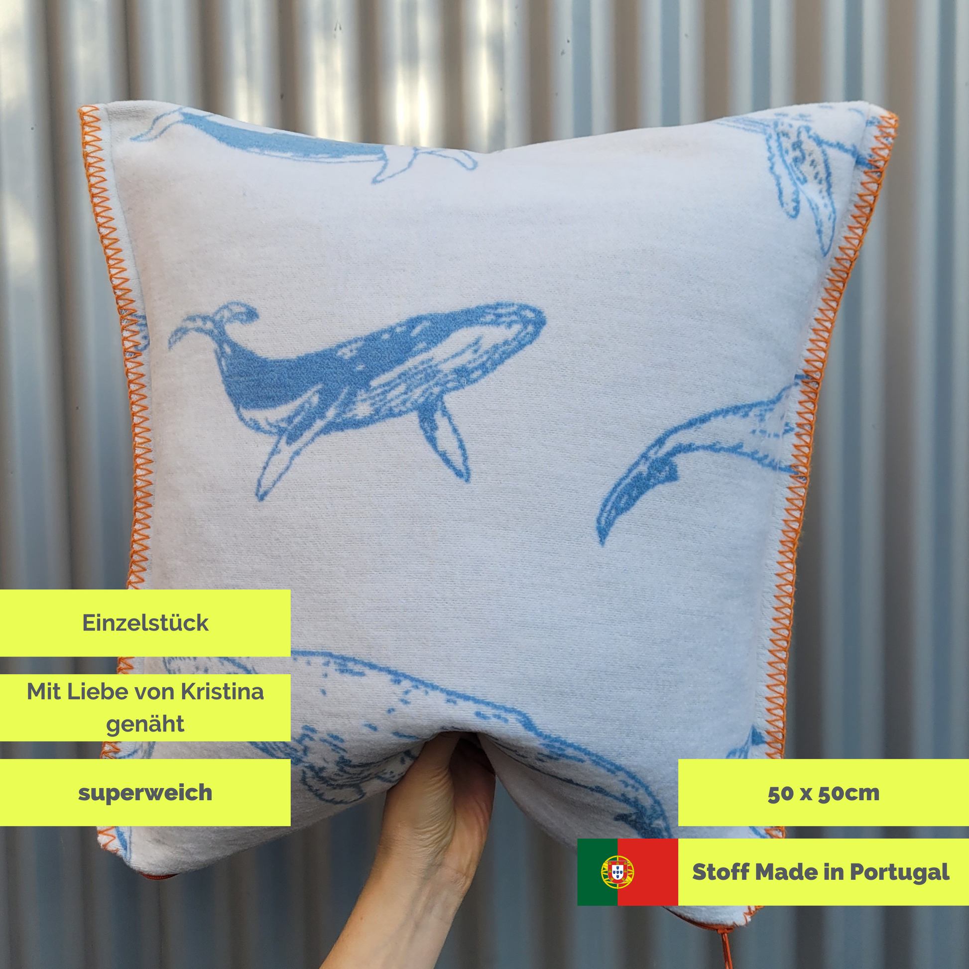 Upcycling-Kissenhülle BLAUWAL 50x50 cm