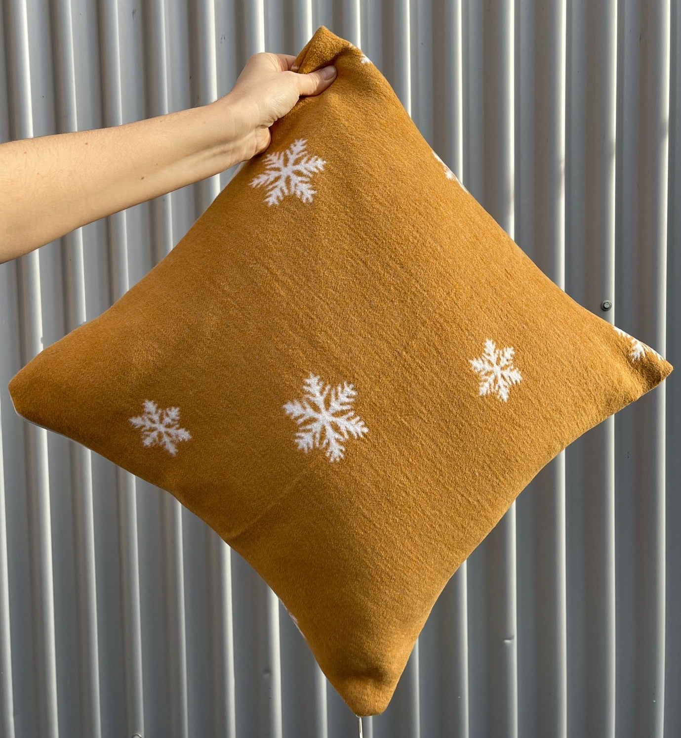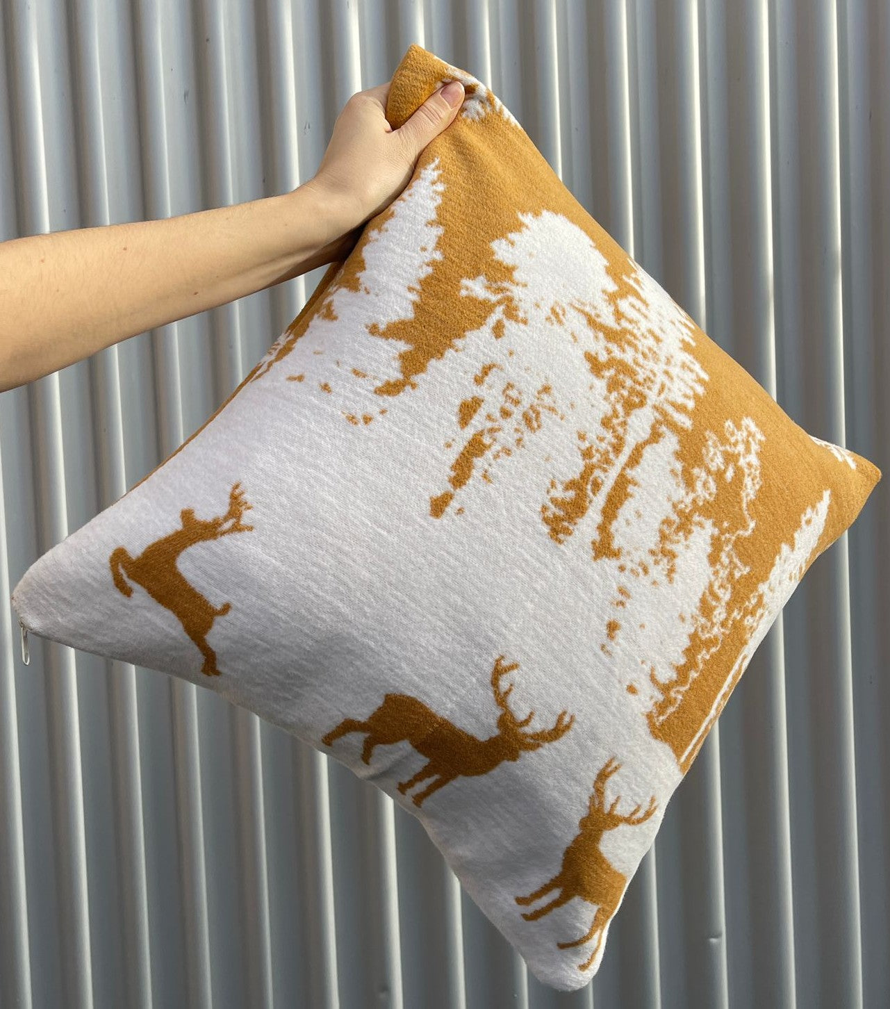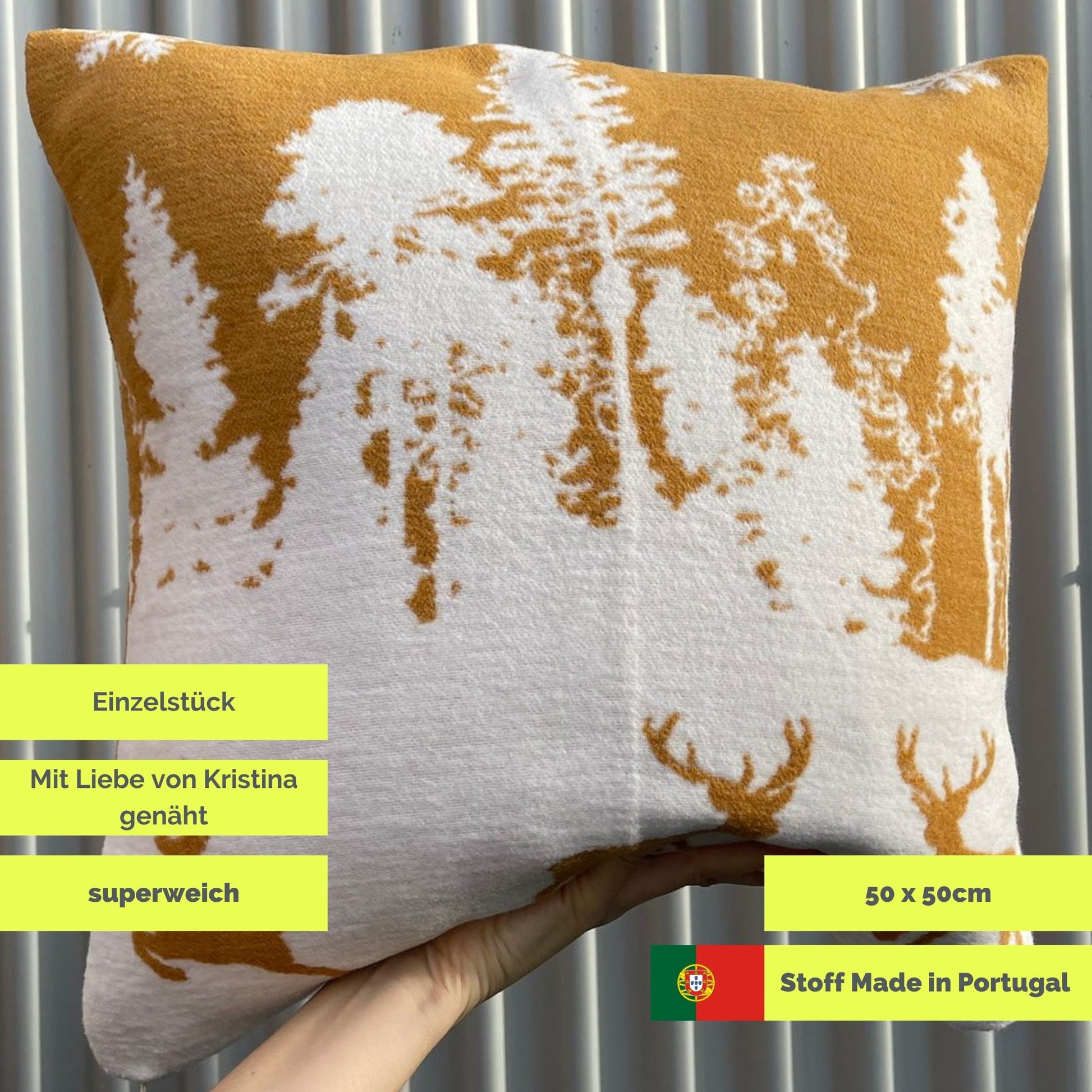 Upcycling-Kissenhülle WALD HIRSCH SCHNEEFLOCKEN 50x50 cm